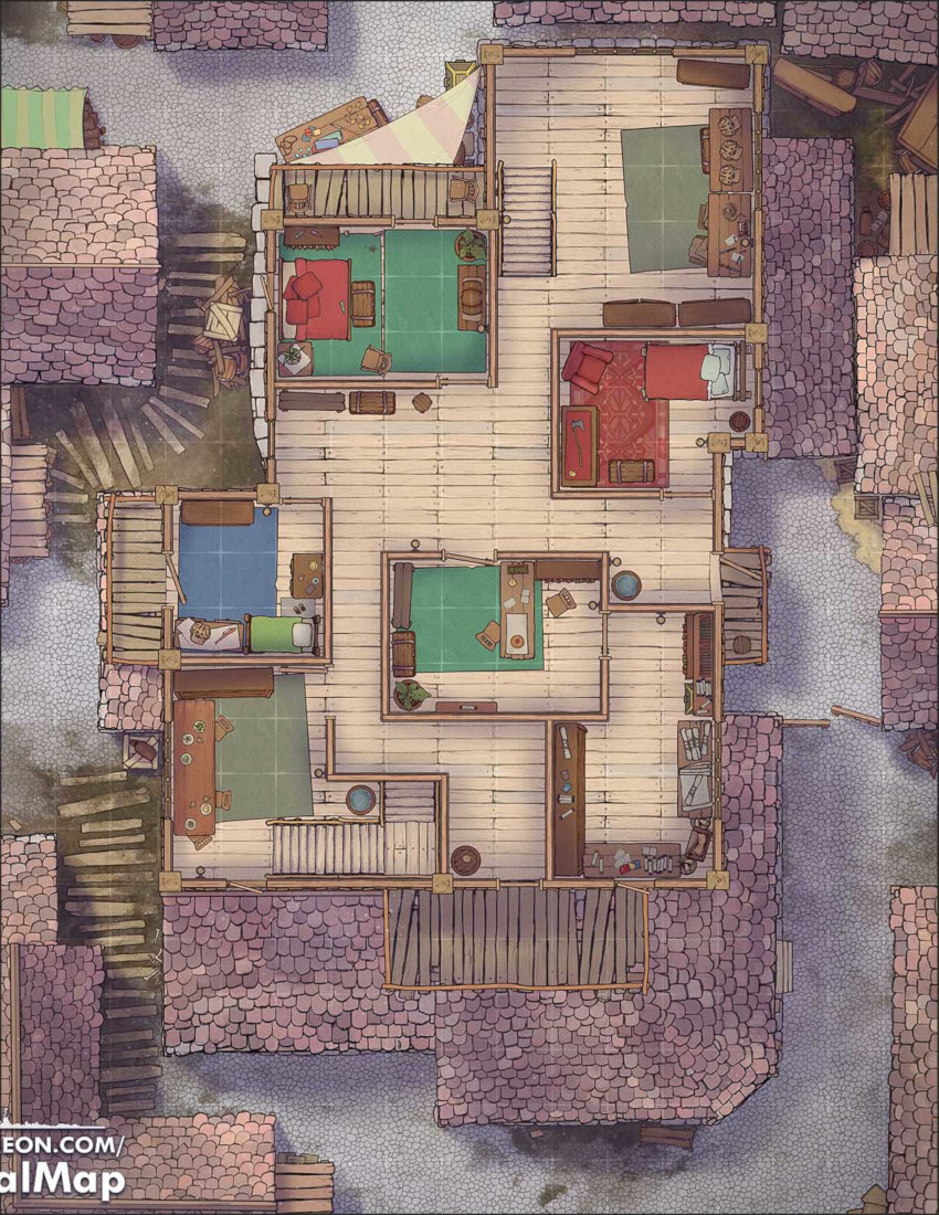 Voici plusieurs battlemaps pour vos parties sur Virtual Tabletop, principalement de Neutral Party, Czepeku, Tactical Master, Tom Cartos et GoAdventureMaps, toutes ajustées à des cases de 50 x 50 pixels pour l'Online Assistant d'AideDD.